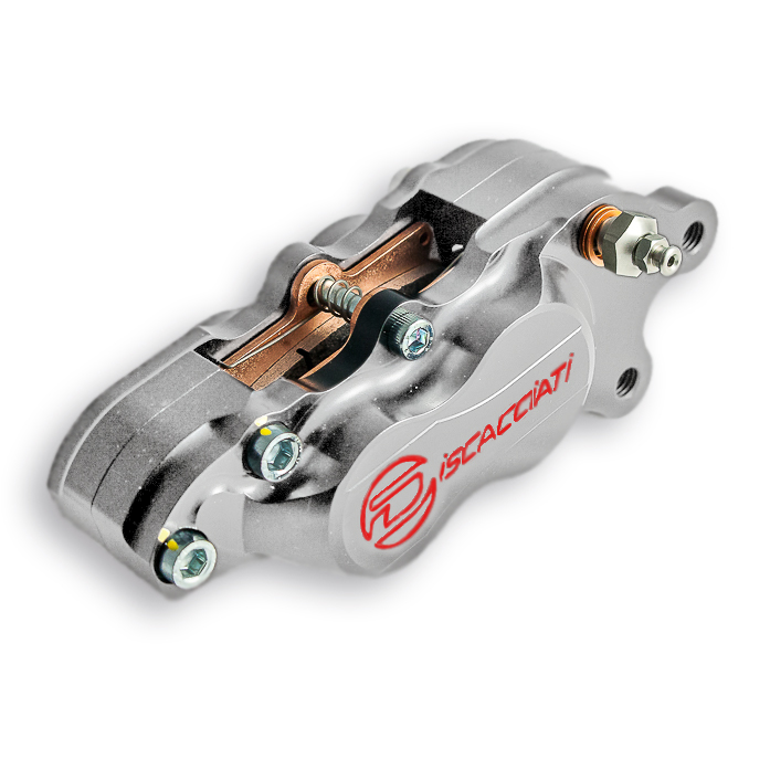 Caliper and pistons inside are both machined from billet aluminium using numerical control machines (CNC) in order to give more stability to the product.