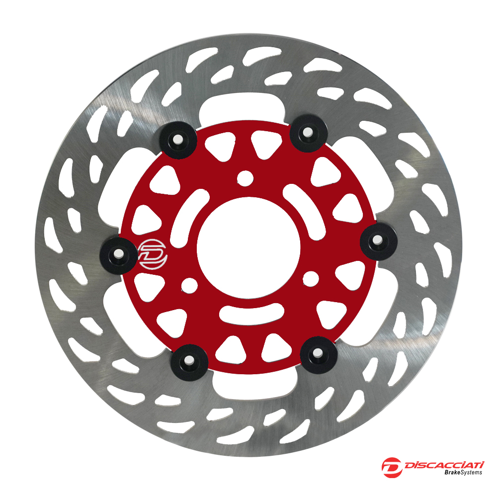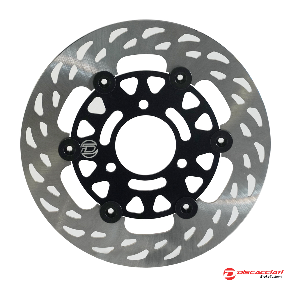 Our floating discs are designed and engineered to increase braking torque and front-end handling, resistance to prolonged thermomechanical stress and dispersion of heat generated by braking, especially in extreme use. More grip under braking, greater responsiveness and less weight, and therefore better handling. In addition, high heat dissipation ensures constant braking power in all conditions. Our floating discs consist of: Brake rotor machined from laser-cut and heat-treated AISI 420 steel plates, this has slotted holes to dissipate heat and keep the pad alive.